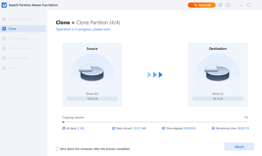 • Transfer or backup data from a specific partition on a hard disk to another disk or partition by cloning partition.